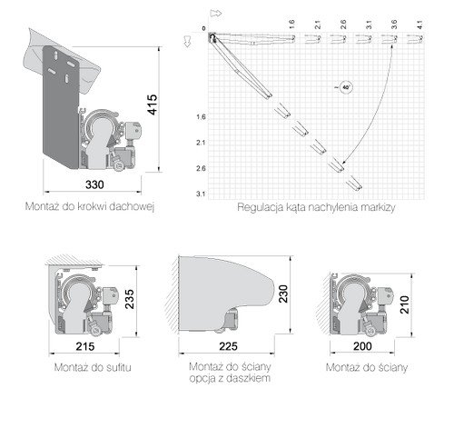 możliwość montażu do ściany, sufitu, krokwi dachowej