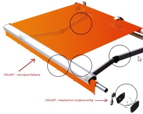 Najbardziej reprezentacyjną częścią markizy jest tkanina i falbana.