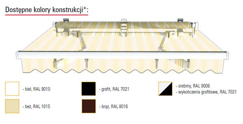 Producent gwarantuję możliwość zakupu nowych tkanin w celu wymiany po kilkuletniej eksploatacji markizy.